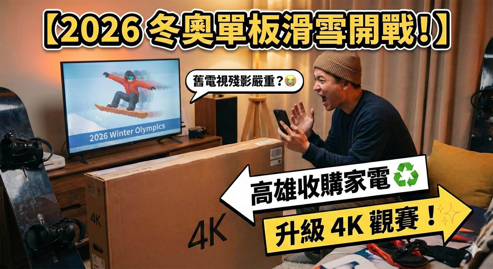 2026 冬奧單板滑雪開戰!舊電視殘影嚴重?高雄收購家電 升級 4K 觀賽
